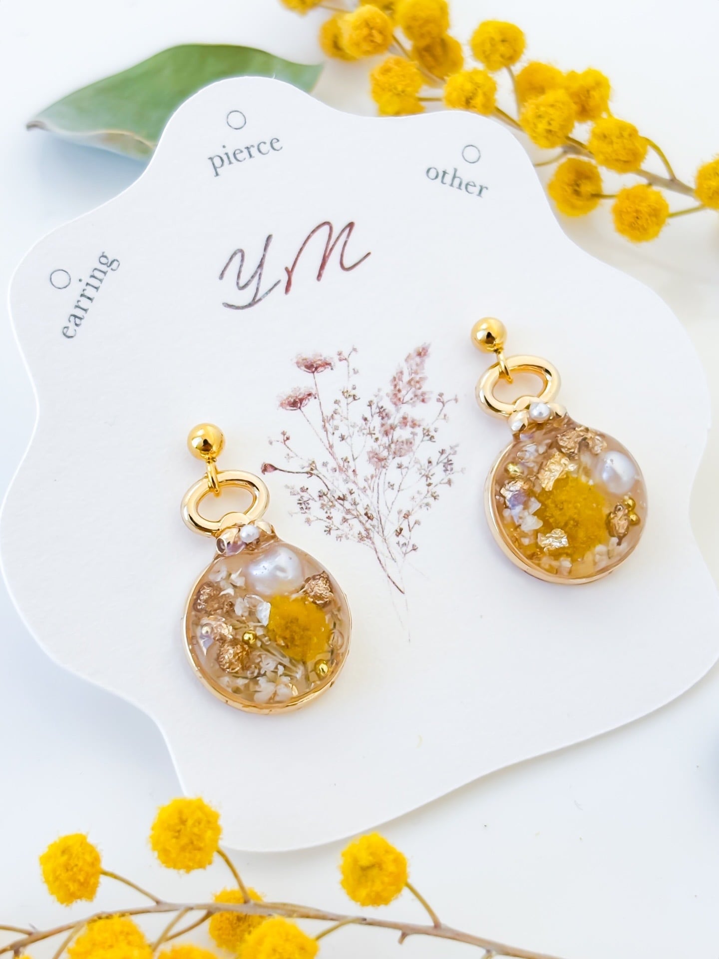 透明感のある中にミモザのお花を