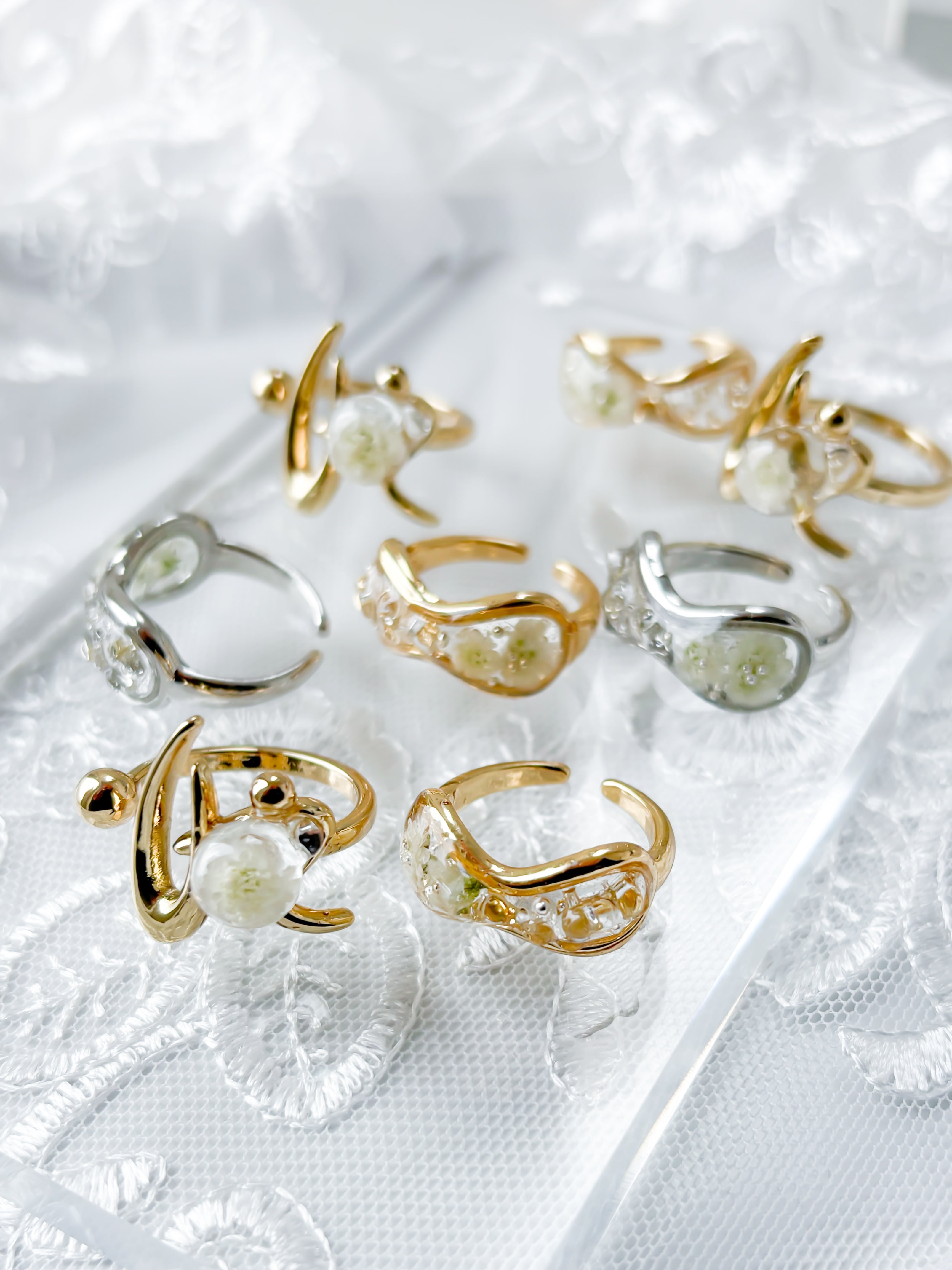かすみ草を閉じ込めたリング。